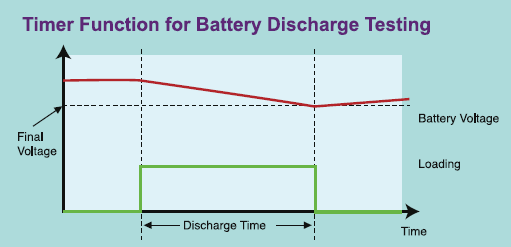 63200E特别为电池放电测试,提供用户三种放电模式 : 定电流、定电阻与定功率模式进行稳态放电,并透过设定截止电压与停止时间(1秒~100,000秒),让电子负载能正确的停止拉载,确保电池不会因过度放电而损坏。除此之外,在量测方面,能测量电池的放电电量(WH、AH)与总放电时间。举例说明 : 当按下Load ON开始拉载,63200E系列的内部定时器会开始进行计数,直到电池电压降至所设定的截止电压或按下Load OFF停止拉载,定时器才会停止计数。电池放电测试功能亦可应用在超电容的放电时间测试和其他相同应用等。