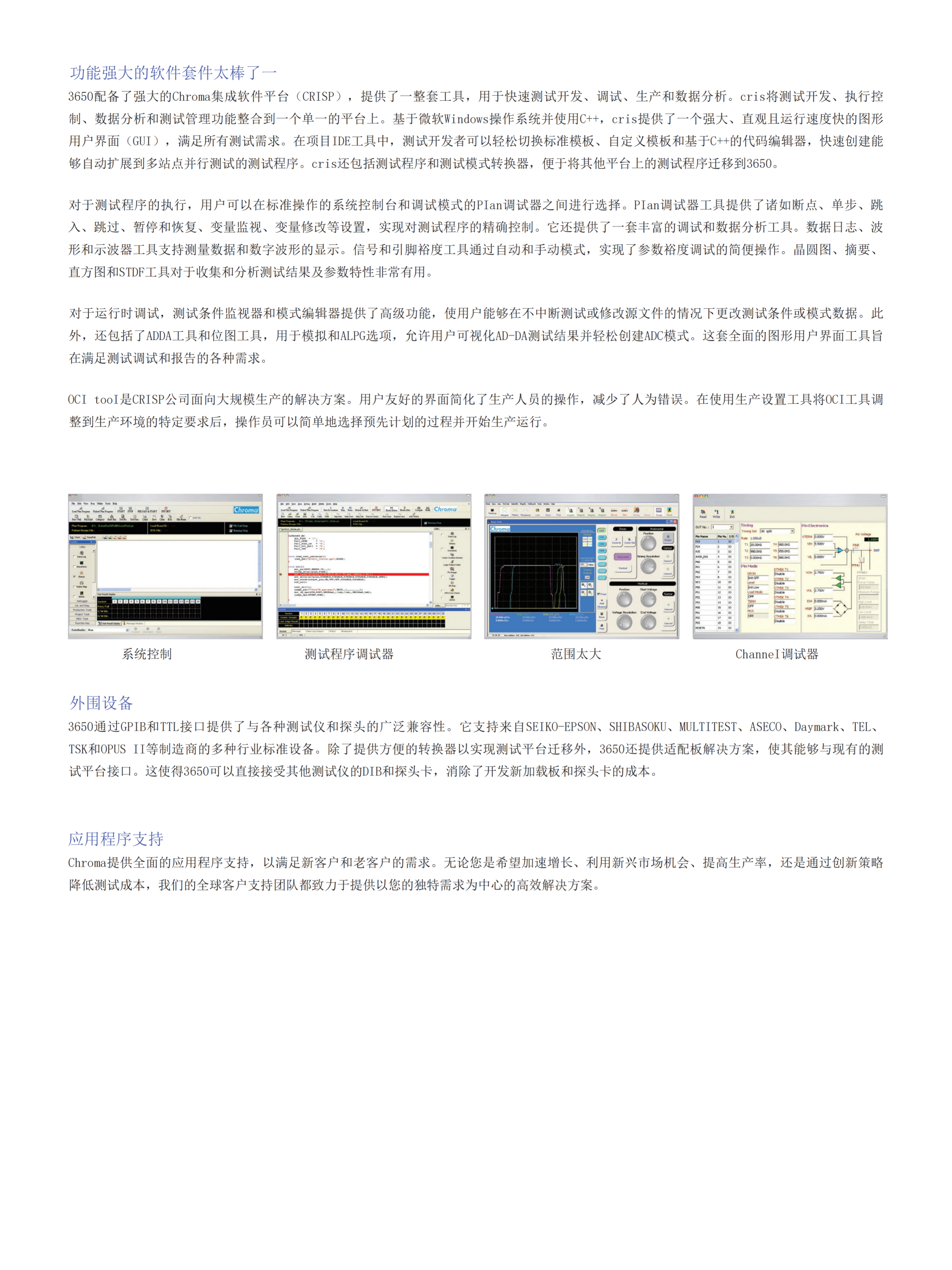 Chroma 3650是一款具有高吞吐量和高并行测试能力的片上系统测试平台,为无晶圆厂、IDM和测试机构提供最具成本效益的解决方案。